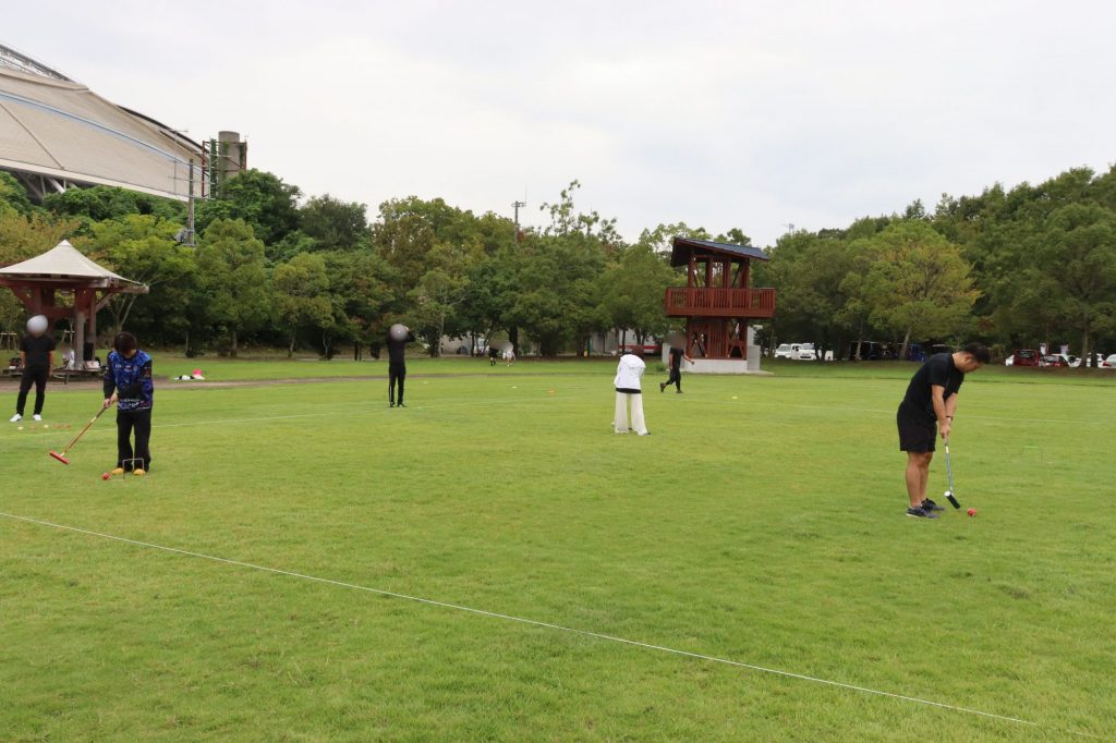 ゲートボールやキックターゲットで体を温めた後は、試合に向けて入念に作戦会議!