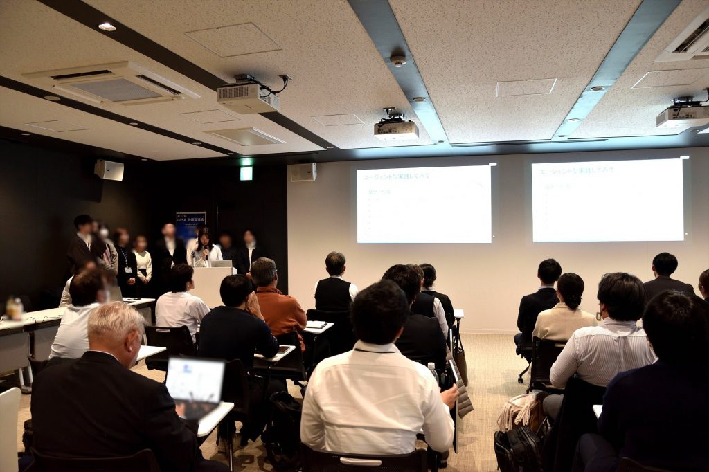 モバイルクリエイトからは若手社員3名が登壇し、他会員との共同研究の成果を発表しました。