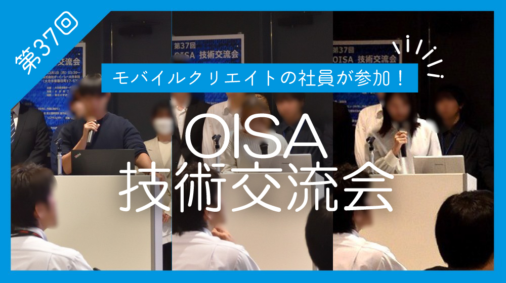 12月1日(月)、第37回OISA技術交流会が行われ、第2部の技術研究会部会発表にモバイルクリエイトの社員が登壇しました。