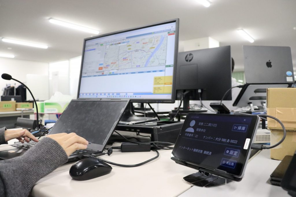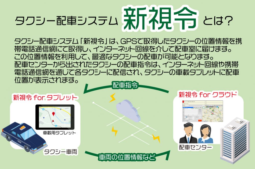 このタブレットには、タクシーを呼んだお客様の位置情報の受信、タクシー会社との通話・メッセージ機能、GPSによる車両位置情報の送信など、配車業務に役立つさまざまな機能が搭載されていて、これらの情報は、タクシー会社やスマートフォンアプリ「らくらくタクシー」にも共有されます。